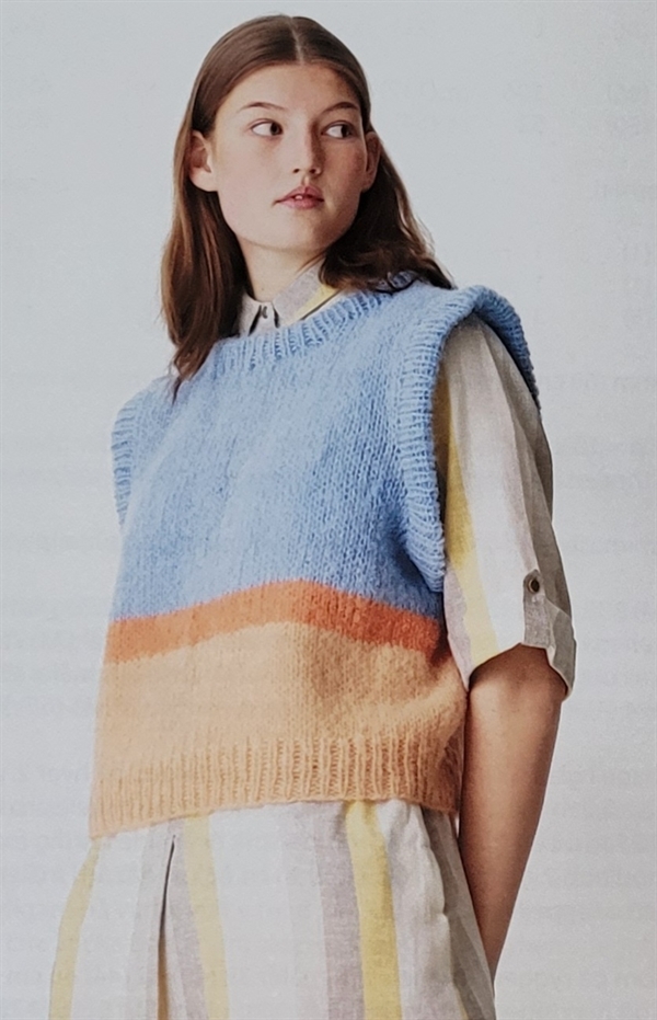 Kundeservice send en mail til mail@fruhyasinth.dk Fragt fra 42,-Fri fragt over 499,- ved levering til pakkeshop Hurtig levering1-3 hverdage Forside » Opskrifter » Strikkeopskrifter til download Vest med Ribkant - Elsa På lager Lev. 1-3 dage Pris ved køb af 1 Stk,15,00 DKK Antal Køb Vest med rib VÆR OPMÆRKSOM PÅ, AT DU SKAL DOWNLOADE OPSKRIFTEN FRA DIN ORDREBEKRÆFTELSE. Smart vest med ribkanter - strik den med striber, som du har lyst eller også ensfarvet. Vesten kan bruges som en lækker accessorie eller som let overtøj en kølig sommerdag. Strikkefastheden er 13 m x 17 p = 10 x 10 cm i glatstrik på p 7. Du skal bruge rundpind 6 og 7 (60). Elsa finder du i alle farver her Størrelse S M L XL XXL Overvidde 88 96 106 112 120 Længde 48 50 52 54 56 Garnforbrug Fv 05 Koral 1 1 1 1 2 Fv 06 Orange 1 1 1 1 1 Fv 10 Lyseblå 2 3 3 3 4 Varenr.: 829